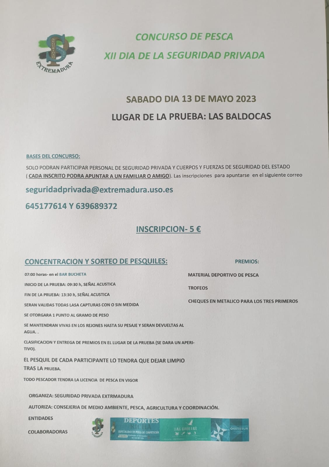 Convocatoria del concurso de pesca del XII Día de la Seguridad Privada en Extremadura